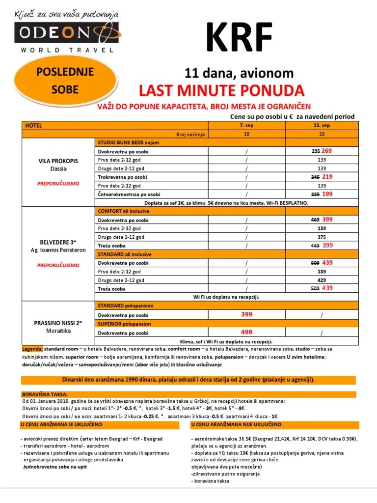 *cene su izražene u € po osobi i bazirane na 2 osobe koje dele dvokrevetnu sobu. Turistička agencija i turoperator iz beograda. Godine u beogradu.bavi se organizacijom aranžmana u zemlji i inostranstvu, prodajom avio karata, iznajmljivanjem prevoza, kao i autobuskim i minibus prevozom putnika. Sve cene su podložne promenama.. Last minute i posebne ponude.